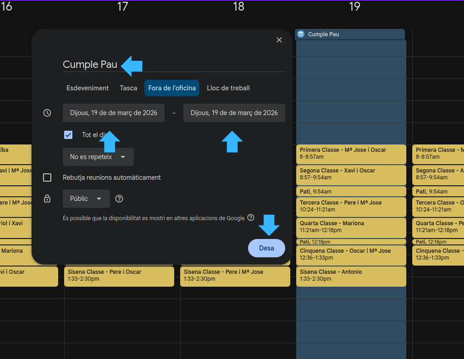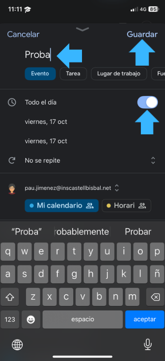 In my case I have chosen the day of my birthday and I will check if this event comes on my phone.