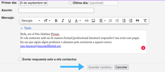 Configuració d’una resposta automàtica que informi del correu corporatiu