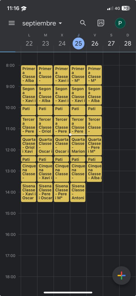 Per tenir a mà l’horari quan no estigui a classe l’he sincronitzat amb el del mòbil per tal de poder organitzar-me millor.