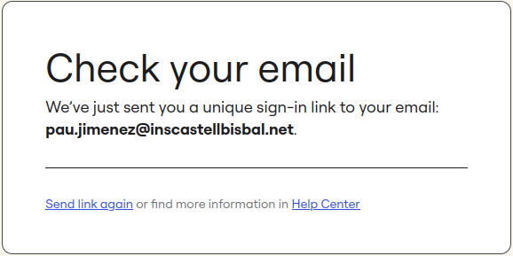 Ens redirigirà a una altra pàgina demanant-nos que comfirmem l’inici de sesió al correu on hi haura un enllaç que ens portarà a la nostra pàgina personal de Miro.