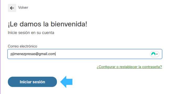 Ens portarà a la pàgina d’inici de sessió on ens demanarà el nostre correu i contrasenya.