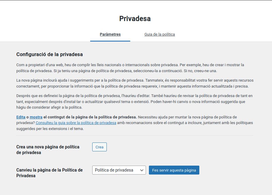 Galetes i configuració de privadesa