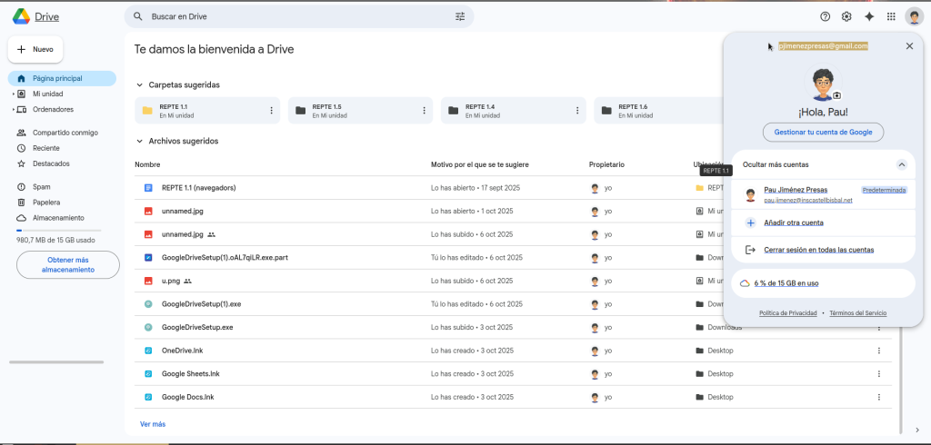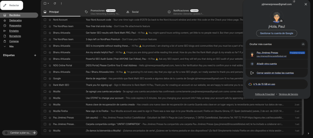 Les plataformes web a les quals he accedit són: Gmail, Google Drive, Google Classroom, Miro, Canva, IsardVDI, WordPress, VirtualBox, Visual Studio Code i Python, FileZilla