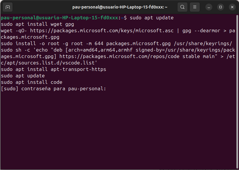 sudo sh -c 'echo "deb [arch=amd64,arm64,armhf signed-by=/usr/share/keyrings/packages.microsoft.gpg] https://packages.microsoft.com/repos/code stable main" > /etc/apt/sources.list.d/vscode.list'