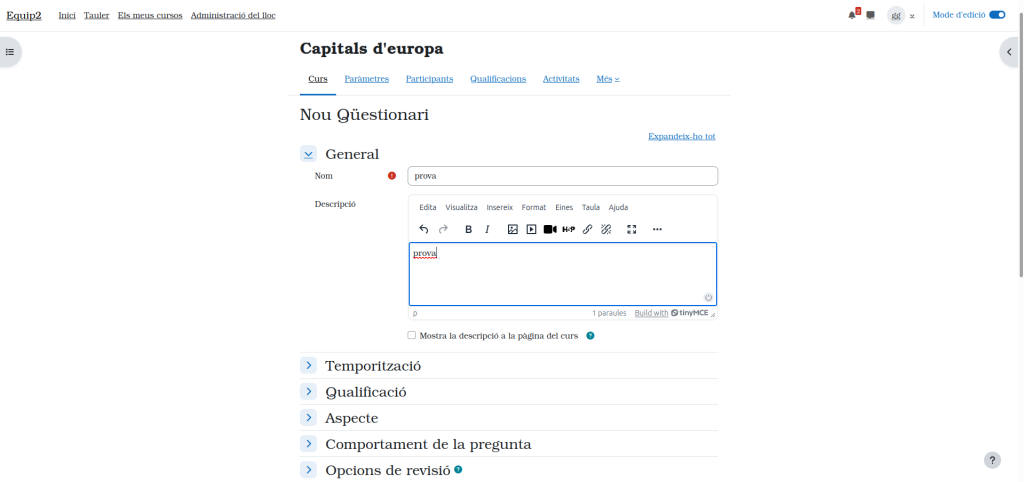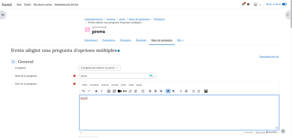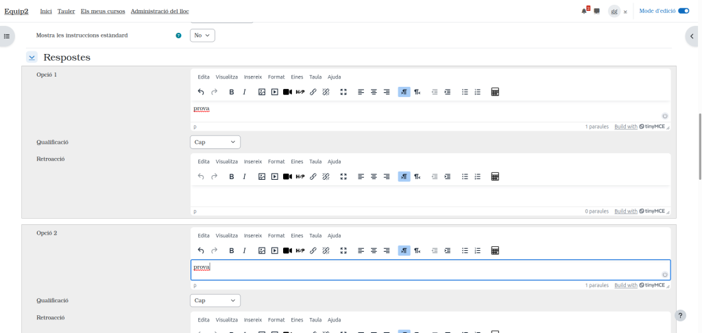 Una vegada he acabat d’escriure les preguntes les he desat. I aqui hi ha un exemple de com quedaria.