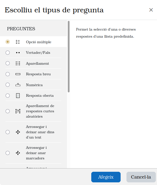 Aquí haurem d’escriure la pregunta i escrit les respostes.