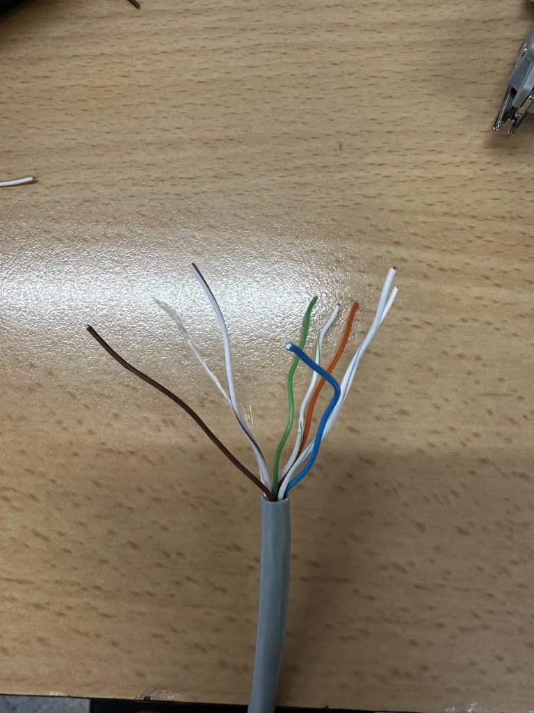 Per a la nostra LAN Party, hem fabricat cables de xarxa directes utilitzant la norma TIA/EIA-568B. Hem triat aquest estàndard perquè és el més utilitzat en entorns de xarxes locals actuals. L’objectiu és garantir una connexió estable i d’alta velocitat (Gigabit) per evitar el lag i assegurar que el trànsit de dades entre els equips de joc i el switch sigui fluid. Hem utilitzat cable de Categoria 6 per garantir que l’amplada de banda suporti el trànsit de jocs i streaming simultani sense colls d’ampolla.